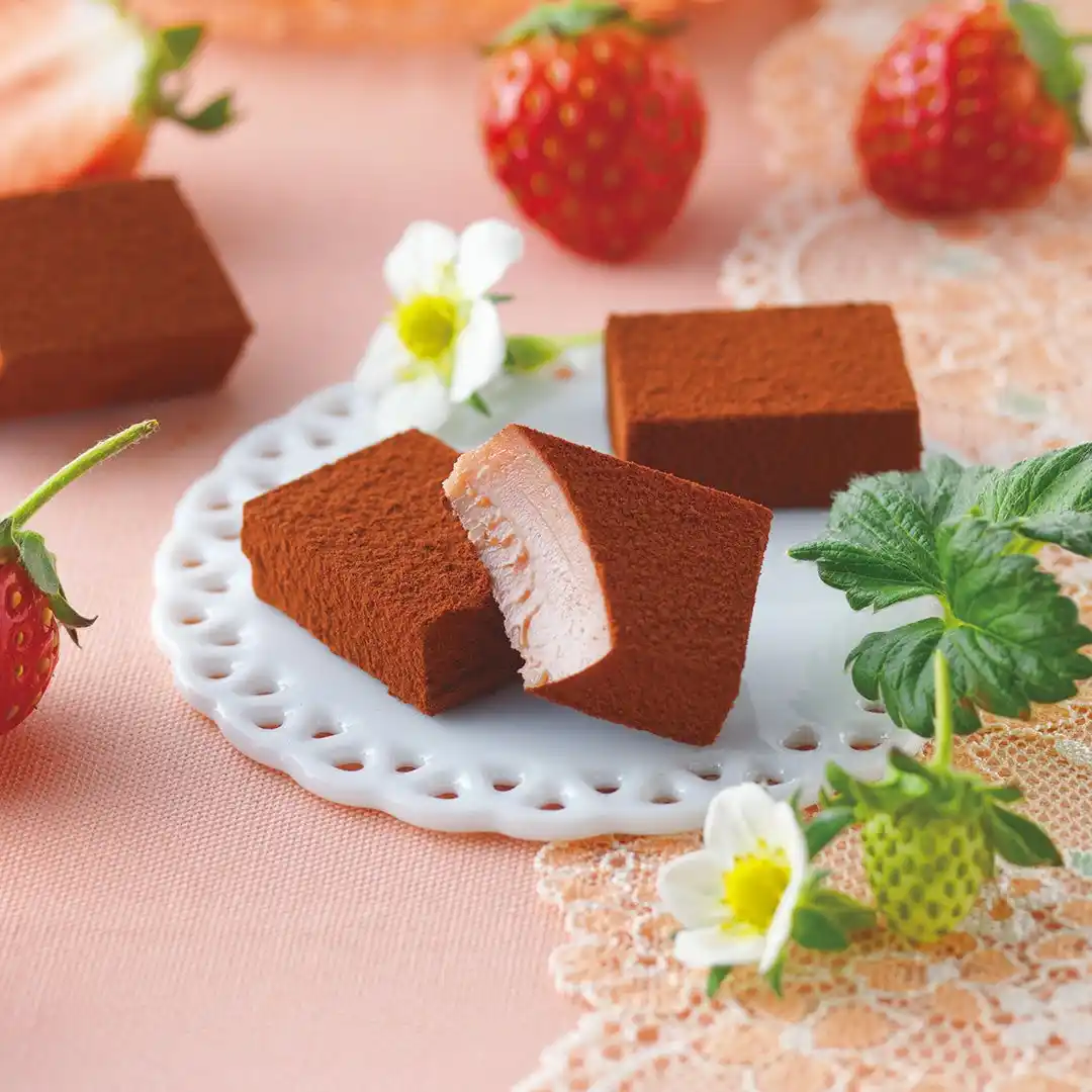 ミルクとストロベリーの風味がとけ合うチョコレートに、ストロベリーリキュールときりっとドライなジンをアクセントに加えました。甘くさわやかな香り、豊かに広がる風味、そしてすっきりとした後味が魅力です。 |