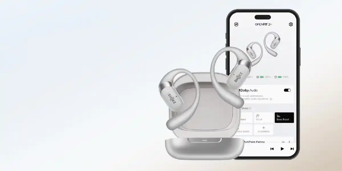 Shokzアプリのカスタマイズ機能を使用して、自分好みにリスニング体験を調整できます。Shokzアプリをダウンロードして、OpenFit 2+をペアリングすることで、Dolby Audioのオンオフ、マルチポイント接続、イコライザモード、ボタンのカスタマイズ機能の設定はもちろん、リアルタイムにバッテリー情報の確認やファームウェアのアップデートも可能です。イヤホンに関する必要なことは、すべてひとつのアプリで管理できます。 |