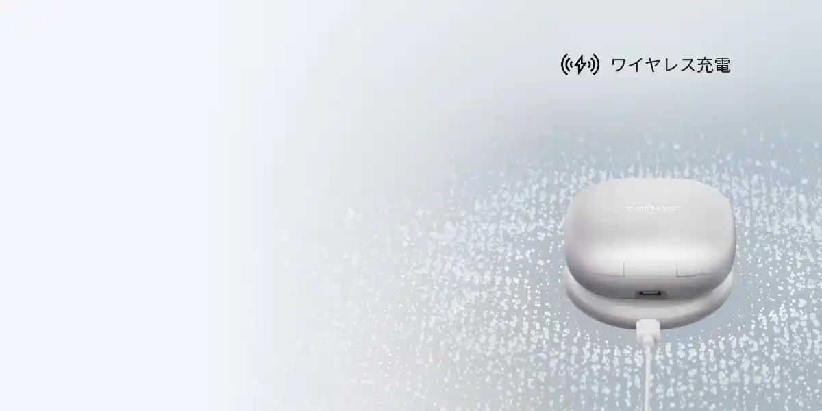 充電ケースを互換性のあるワイヤレス充電器の中央に置くだけで準備完了です。 |