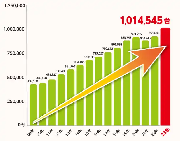 ・レンタカー登録車両数は前年比110%増と、継続的に伸び続けているビジネスモデルです。 |