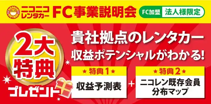 今ならFC事業説明会参加で2大特典をプレゼント!ぜひご参加ください! |