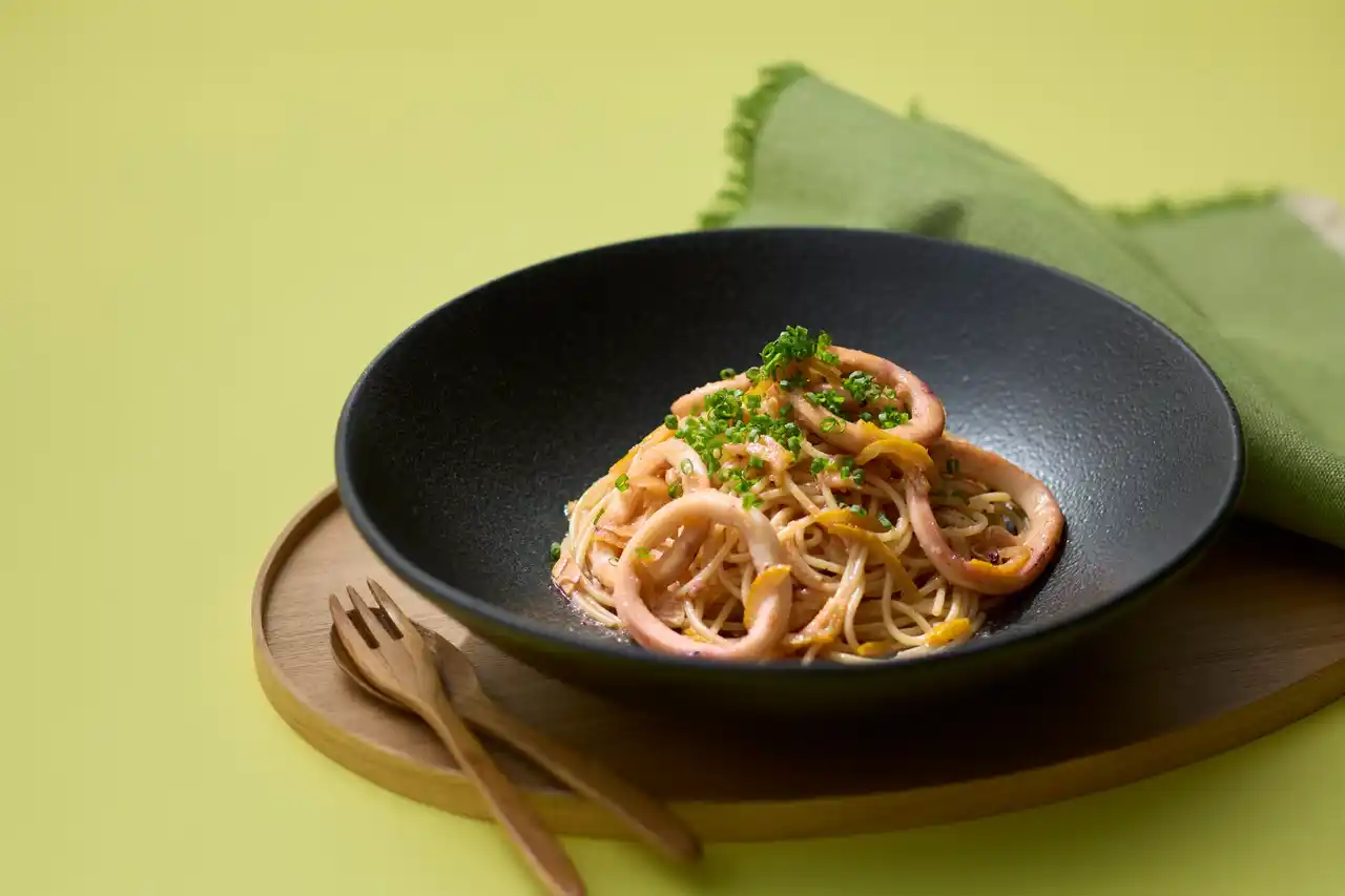 イカの旨みにたらこのコクが合わさり、仕上げに柚子の香りが後味まで心地よく広がるひと皿。素材それぞれの持ち味を活かし、軽やかさの中にも満足感のある味わいに仕上げました。 |