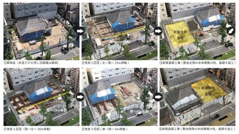 三度にわたる「曳家」工程の様子 |