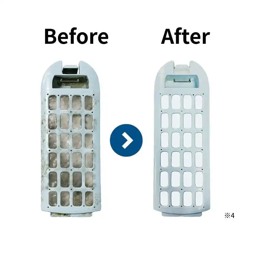 細やかで毎度面倒な糸くずフィルター掃除も、かけて放置するだけで手軽に清潔をキープすることができるアイテムです。 |