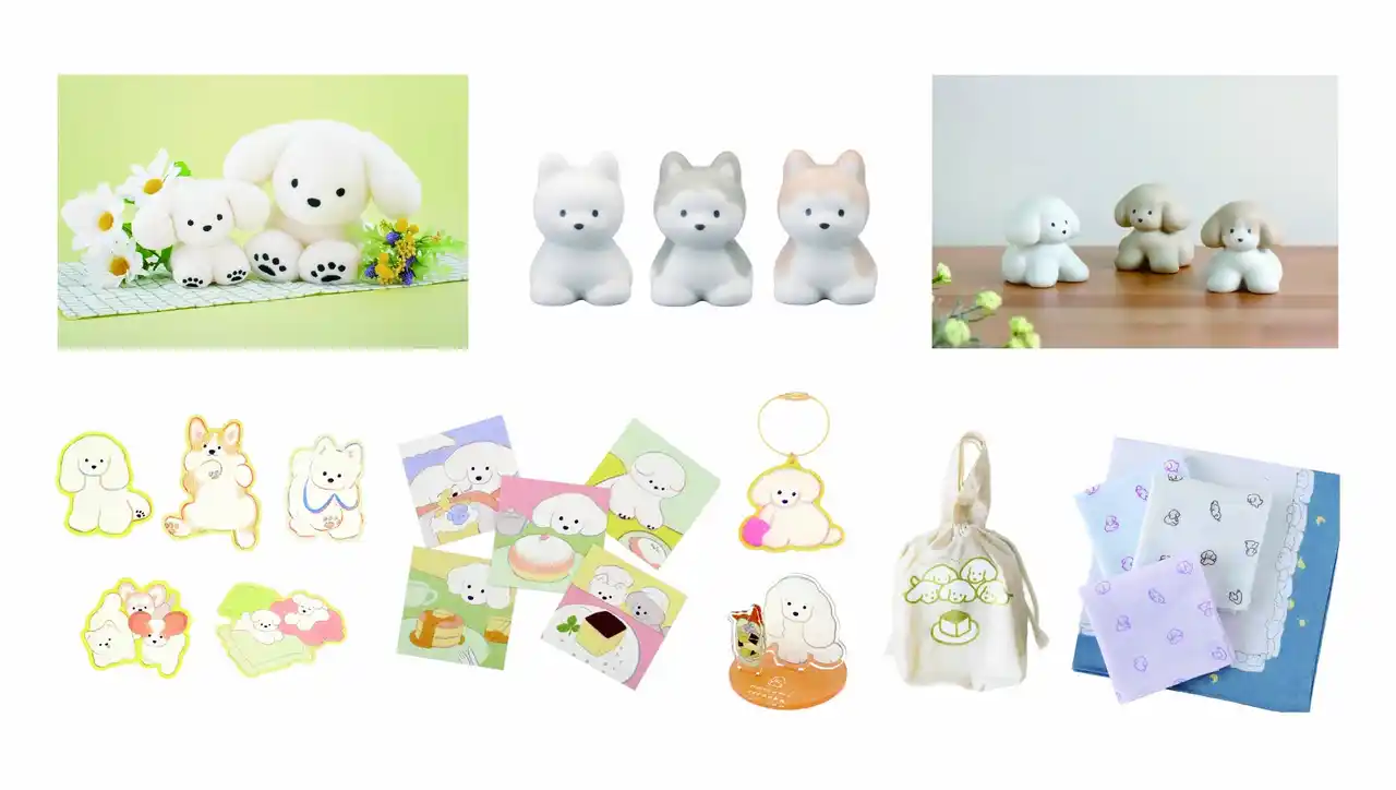 てらおかさんが描く犬はさまざまなグッズになっています。本展のショップコーナーにはできるだけ多くの商品をご用意します。日々つかえる雑貨から、お部屋に飾りたくなるもの、かわいいパッケージのお菓子や飲みものまで。お買いもので、お気に入りの「わたしの犬」を見つけてください。 |