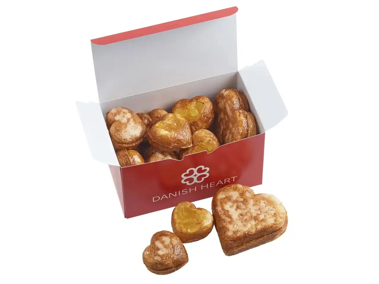 デニッシュハート2個、ミニデニッシュハート12個を専用のボックスに詰め合わせました。手土産におすすめです。 |