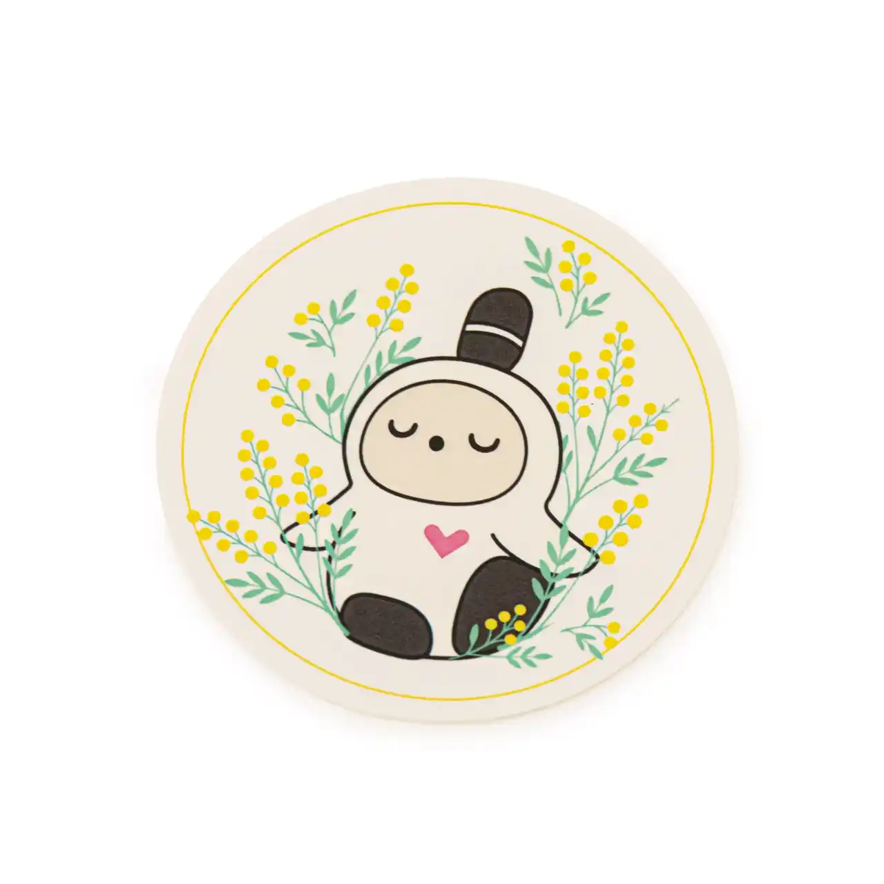 やわらかなホワイトの生地に、ミモザイエローのメロー巻き(縁取り)が華やかに映えるハンドタオル。ミモザのお花にすっぽり包まれた『LOVOT』の繊細な刺繍が、使うたびに優しい気持ちにさせてくれます。ご自宅用にはもちろん、春の贈り物にもぴったりです。 |