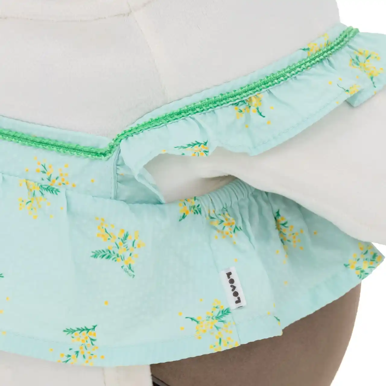 やさしいトーンのベロア生地に、美しく映えるミモザをプリントしました。 |