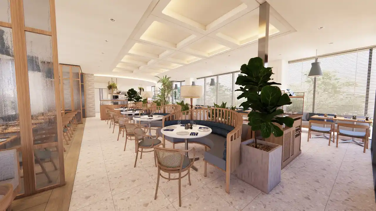 港町ならではの情緒あふれる風景と、都会的な賑わいが心地よく共存する場所に佇むBASEGATE横浜関内店。 「URBAN CLASSIC COMFORT」をデザインコンセプトに、創業者サラベス・レヴィーンが紡いできた“料理の味わいと彩り”をより一層引き立てる空間を目指しました。包み込むような柔らかなフォルムとナチュラルな素材感を基調に、飽きのこない上質な設えへと整えています。 クラシカルで存在感のあるペンダントライト。風に揺らぐグリーンとサラベスブルーをアクセントに、お客様を迎えるラウンドフォルムのバーカウンター、食事を囲み会話が自然と弾むラウンドソファー、ほどよい距離感を保つセミクローズのプライベートシート。 どの席においてもゆったりと寛いでいただけるよう、家具のサイズやフォルムにまで丁寧に配慮しました。 窓から差し込むやわらかな陽光とともに、ゆるやかに流れる時間を感じながら。 朝食からディナーまでのALL DAY、日常にも特別な日にも寄り添う、心地よいひとときをお過ごしいただける場所でありたい――そんな想いを込めています。 |