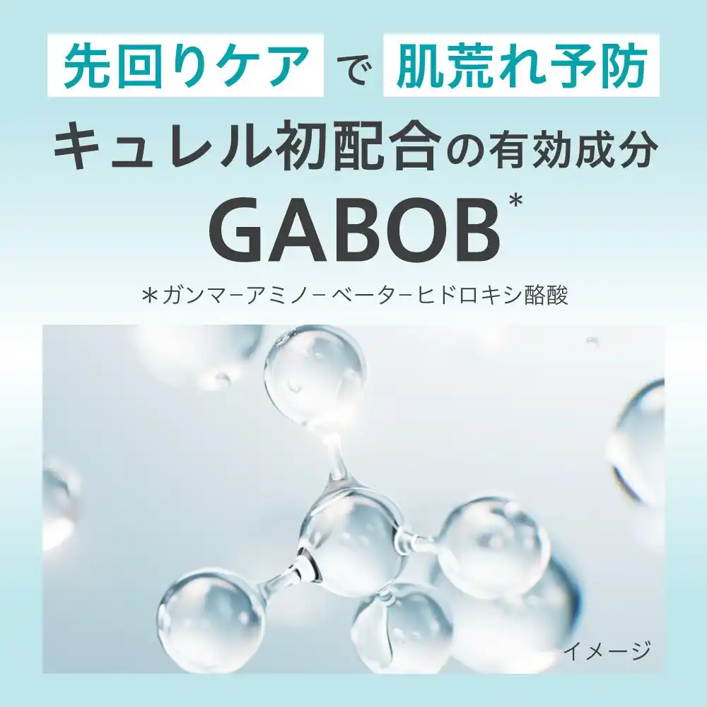 「セラミド機能カプセルPlus*³」を含む美容液が肌に密着。保湿成分を速やかに角層のすみずみまで浸透させ、肌の潤いを保ちます。さらに、キュレル初の有効成分「GABOB*⁴」を配合。 |