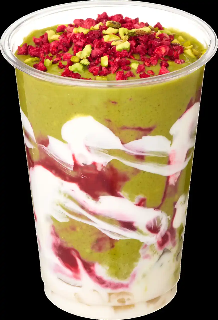 香り高い有機抹茶にクリーミーなアボカドが溶け合う、和と洋をいっぱいに感じられるスムージー。ピスタチオやラズベリーのアクセントと、“とろもち”なわらび餅で、満足感のある一杯。すっきりとリフレッシュしたい時におすすめ。 |