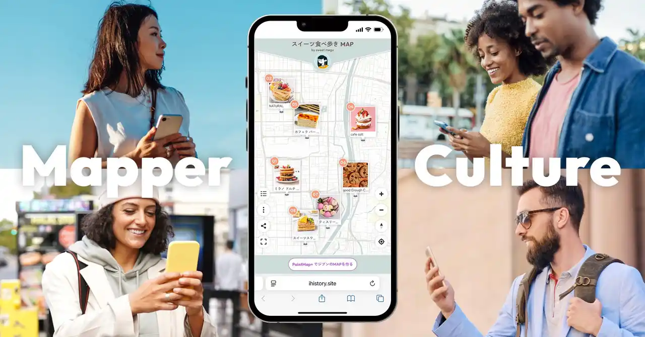 iHistory Inc.は、『PointMap+』を通じて、そんな “個人のメディアコンテンツ“ としてのマップ情報を発信していく”マッパー”たちの創造性を応援し、デジタルマップで人と人がつながり、人生と暮らしを楽しめるカルチャーをグローバルで広げていきます! |