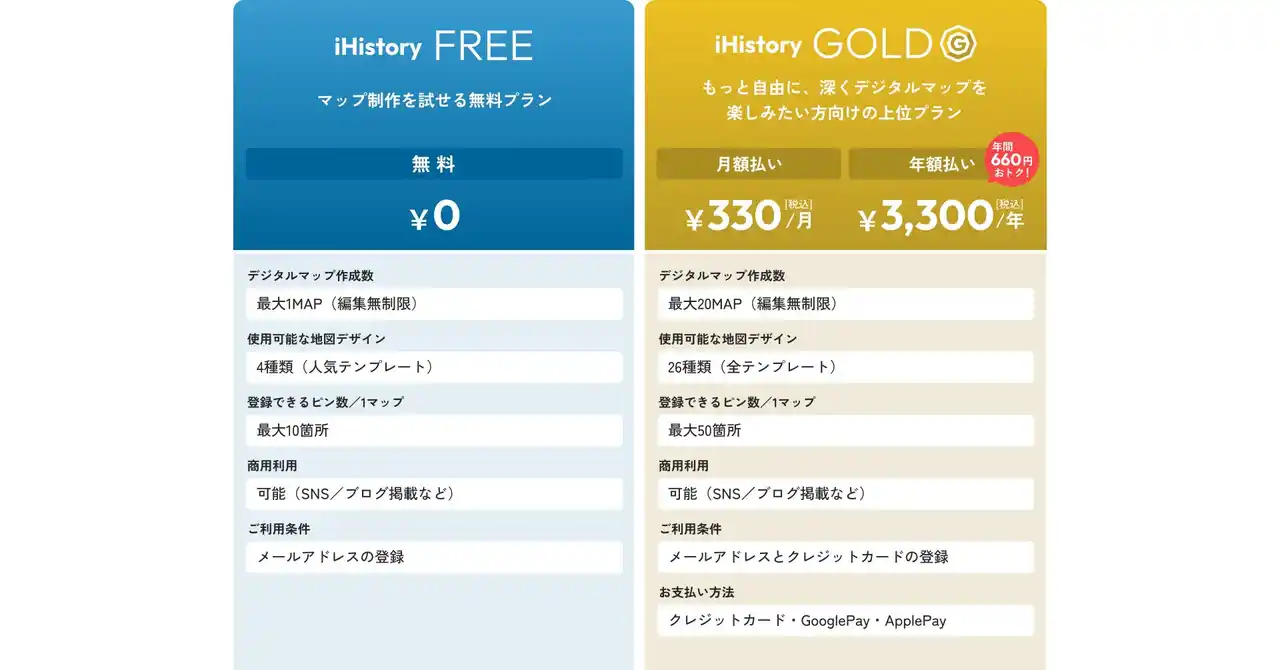 無料で使えるFREEプランと、デジタルマップを使いこなせる有料のGOLDプランがあります。 |