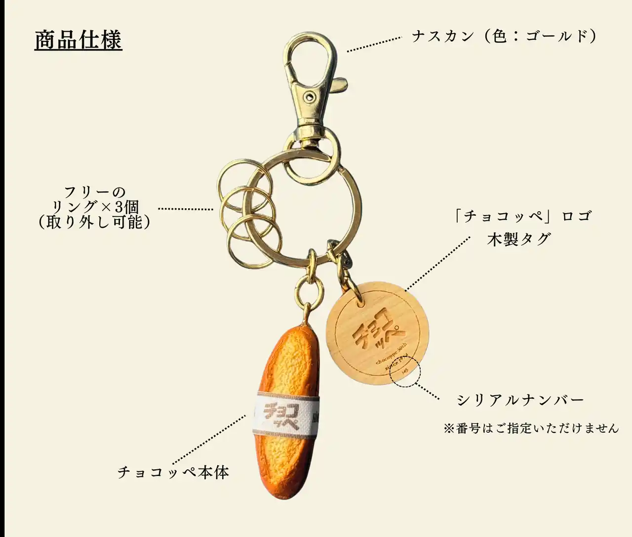 神戸の老舗ベーカリー ケルン(1946年創業・本社:兵庫県神戸市)の看板商品、ソフトフランスにミルクチョコクリームをサンドした「チョコッペ」。樹脂粘土で作ったこのパンのミニチュア「チョコッペキーホルダー」の誕生は2023年夏に遡ります。 |