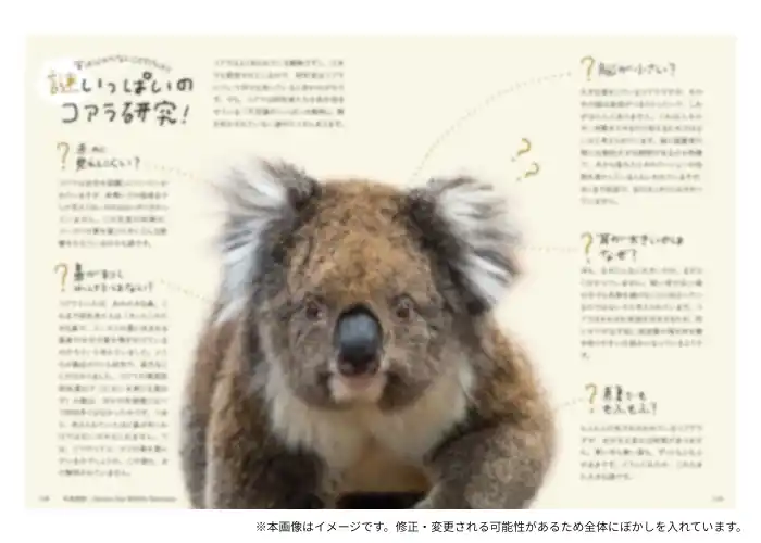 もちろん、謎に包まれたコアラの生態も、オールカラーでビジュアルたっぷりに解説しています。「どうしてコアラはオーストラリアにしかいないの?」「どうしてコアラはユーカリしか食べないの?」など、当たり前だと思っていたコアラの生態にあらためて疑問を向けました。 |