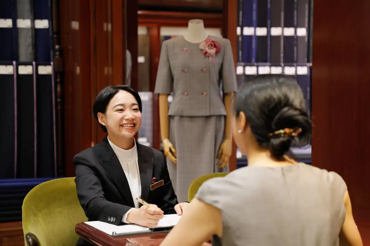 さらに、特徴とすべきは、銀座英國屋が提供する「無料オーダー体験」です。これは、「敷居が高い」と称されがちな銀座英國屋において、ご注文を前提とせずに接客・フィッティングをご体験いただける無料サービスです。オーダースーツの場合、価格を「〇〇円~」と記載せざるを得ず、価格に不安を覚えてしまうものですが、無料オーダー体験であれば、お選びになった生地・デザインでの価格をご確認いただいた上で、改めて安心してご検討いただけます。
