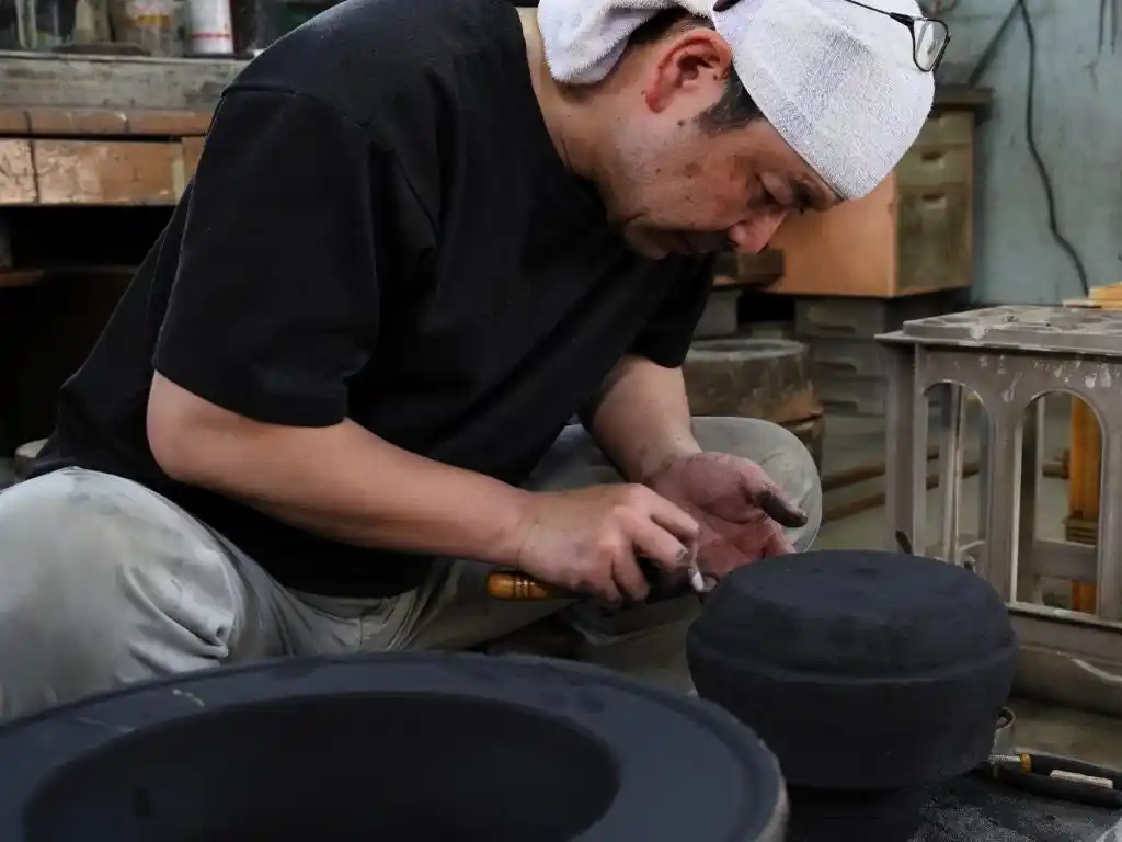 長野 垤志(和銑窯 3代)|釜師・金工 日本古来の鉄「和銑(わずく)」による茶の湯釜を手がけ、日本工芸会正会員として日本伝統工芸展へ継続出品。惣型鋳造のホロ引きや甑炉による溶解などの伝統技術を軸に、現代の感覚を宿した造形で“使われる美”を追求する。 |