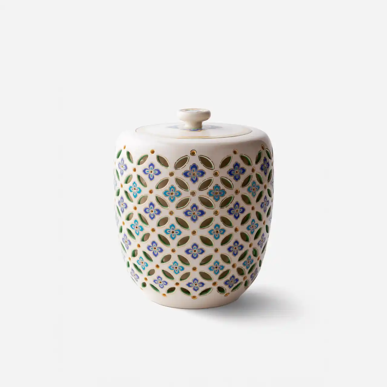 江戸期から「香斎」を継ぐ真葛の家系を背負い、ミシガン大学留学などを経て陶芸を本格修得。萩焼十二代・坂高麗左衛門に師事し、染付・祥瑞・交趾・赤絵・仁清写し・乾山写しまで、京焼の多彩な技法で茶道具を手がける“守備範囲の広い”当代。 |
