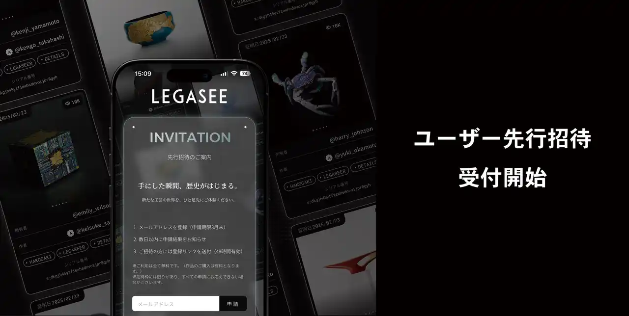 BC株式会社(本社:東京都渋谷区、代表取締役CEO:増田 将星)は2026年3月1日に招待制工芸マーケットプレイス「LEGASEE」(https://thelegasee.com)を正式ローンチいたしました。また登録作家数が150名以上となったことをお知らせします([2026年2月28日]現在)。 |