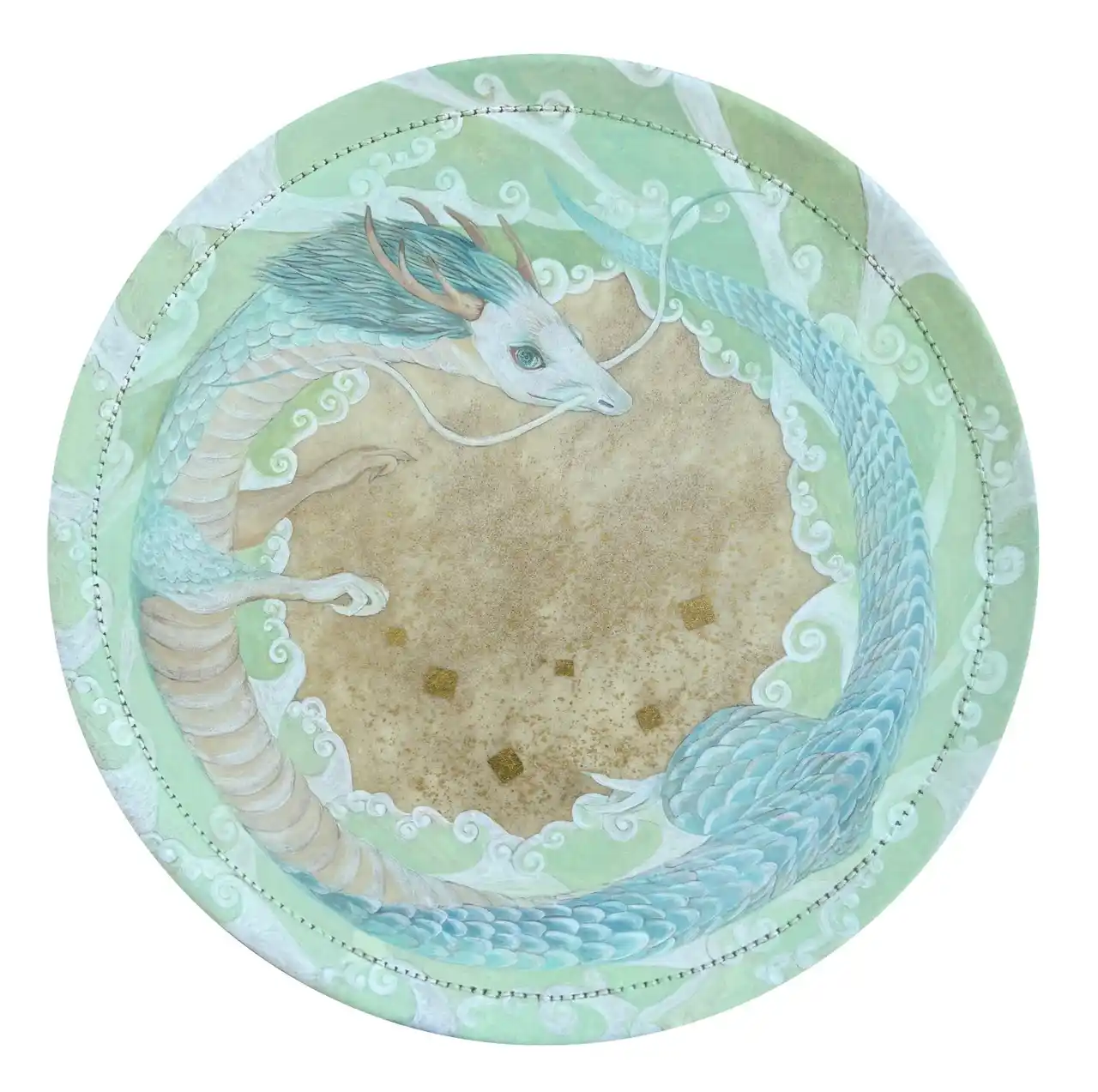 浅埜 水貴「水音」岩絵具、水干絵具、金箔、墨 大崎膠、団扇太鼓、漆(柄部分) |