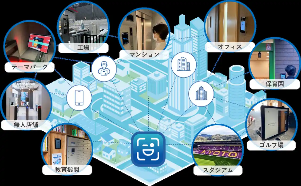 また、マンションに加え、オフィス、保育園、ゴルフ場、テーマパーク等に顔認証サービスを展開しており、顔認証決済「FreeiD Pay」※2やマイナンバーカード連携サービス※3も実証事業を進めています。 |