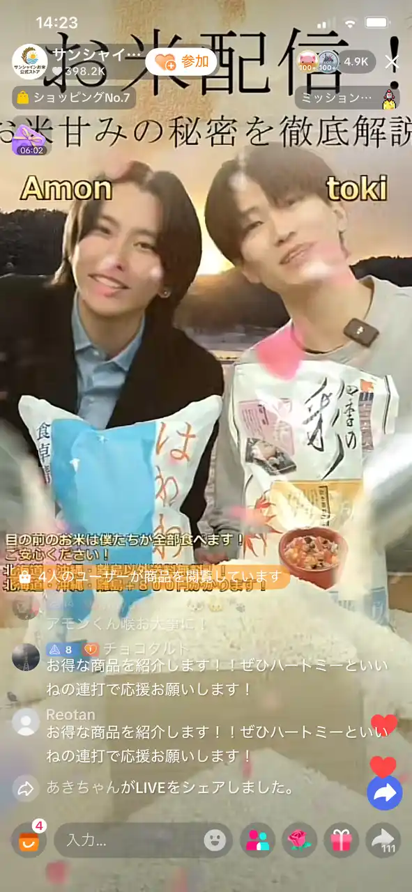 「顔」と「特徴」をダイレクトに伝える: ライブ配信を通じて、生産者の情熱やこだわりだけでなく、 お米の甘み、粘り、炊き上がりの質感といった詳細な特徴をリアルタイムで解説。視聴者の疑問にその場で答えることで、高い納得感と購買意欲を生み出します。 |