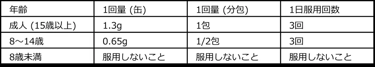次の量を食後又は食間に水又はぬるま湯で服用してください。 |