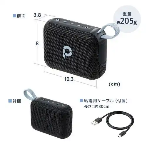 | 20%音量時で最大約24時間の連続再生が可能。キャンプやバーベキュー、長時間の作業BGMにも最適です。Type-C充電に対応し、約2時間で充電完了。USB充電式の内蔵リチウムイオン電池で、繰り返し使えるエコ設計です。 | ||||||||||||||||