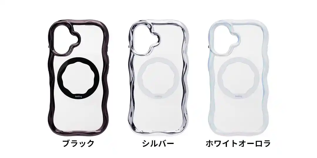 本シリーズは、ウェーブデザインときらめきを特徴としたスマホケースに加え、あわせて使えるモバイルアクセサリーを展開しています。ファッションに自然に溶け込みながら、日常のスタイルにトレンド感をプラスしてくれるアイテムです。 |