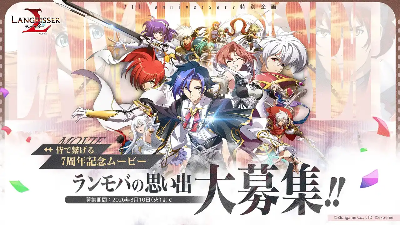 『ラングリッサー モバイル』のサービス開始7周年を記念し、ユーザー参加型企画「思い出ムービー募集」を開催中! |