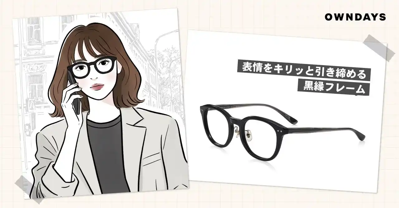 | 表情をキリッと引き締める黒縁フレーム。かけるだけで「できる女」の空気をまとえるから、ジャケットスタイルはもちろん、すっぴん隠しにも。迷った朝に頼れる、強さのあるベーシックな一本。 | |||||||||||