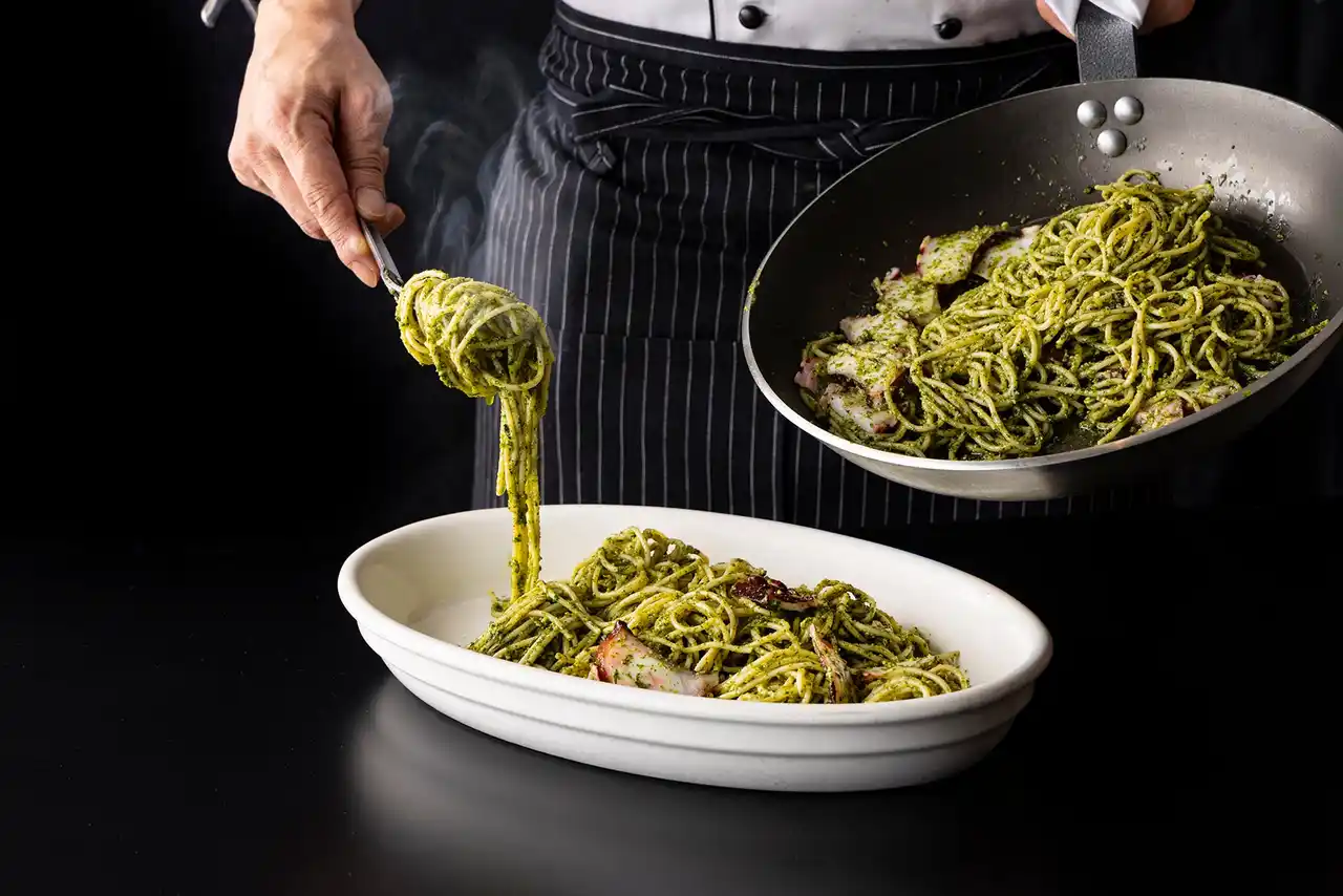 「タコと大葉のジェノベーゼ」など全6種をライブパフォーマンス【ランチビュッフェ限定】 |