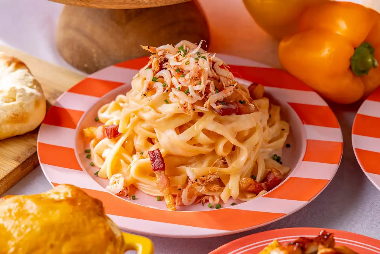 桜エビ&パンチェッタのピンクカルボナーラ |