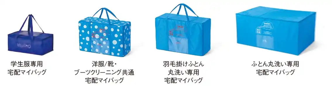 それぞれのコース専用の宅配マイバッグはキャンペーンはもちろんレギュラーサービスでもご利用いただけます。(サービスのご利用前に購入いただくお客さま専用のマイバッグに依頼品を詰め、集荷を依頼いただくシステムでご案内しています) |