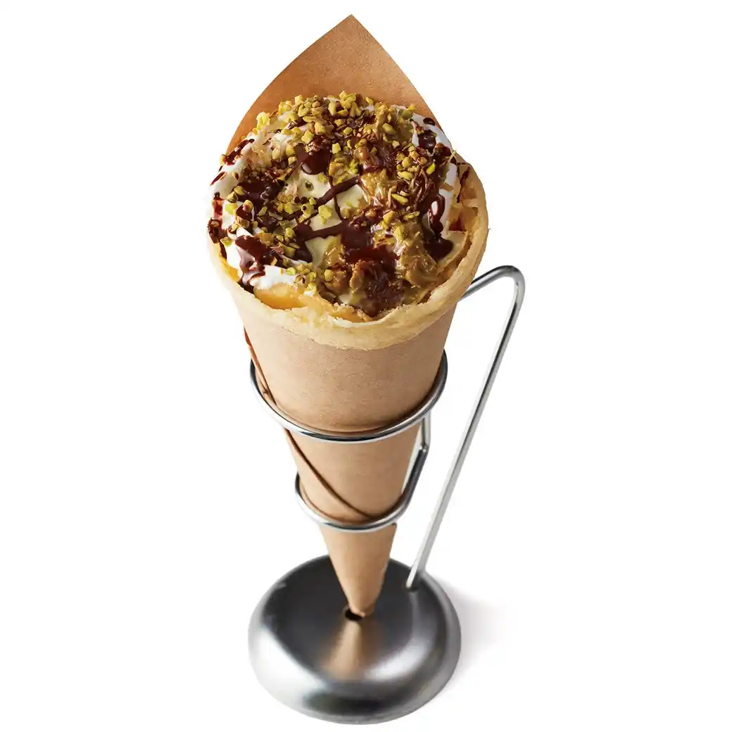 もっちり香ばしいクレープに、生クリーム、ローストピスタチオ、カダイフ、ジェラートなどを贅沢に包み込みました。 |