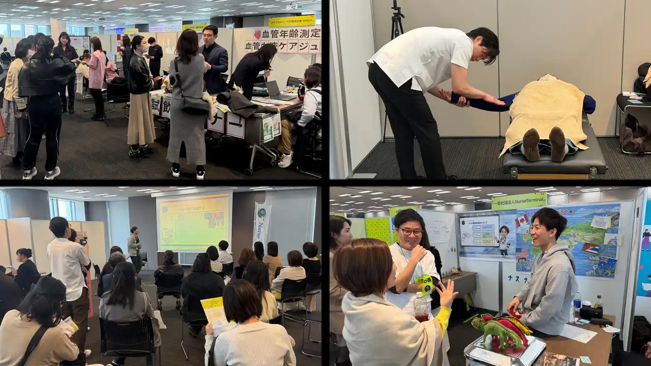 ・初出展となりましたが、多くの看護師の方々にご参加いただき、大変有意義な機会となりました。腰痛や肩こりなど、日々身体的負担を抱える方も多く、健康サポートの重要性を改めて実感いたしました。普段なかなか直接接点を持つことのない看護師の皆さまと対話できたことは、非常に貴重な機会となりました。(Healthy room) |