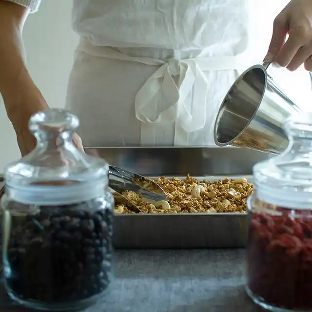 抹茶、ほうじ茶、きな粉、黒糖コーヒーなど、日本らしい味わいの魅力を活かし、現代的なグラノーラとして仕立てました。 |