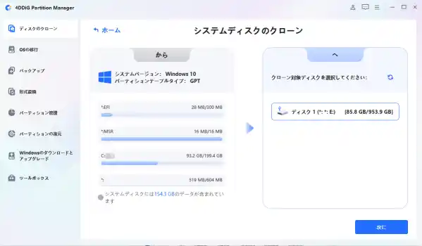 4DDiG Partition Managerを使ってSSD·HDDをクローンする手順は以下の通りです。