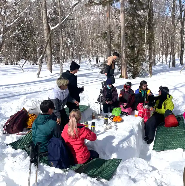・スノーシューで雪の上を歩くのは初めてだったので楽しかったです。雪の上でお菓子を食べる のも楽しかったです。 |