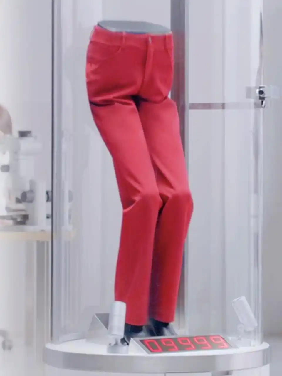 例えば、1日約10万回の屈伸をする検証ロボット「くっしんちゃん」では、出来上がったパンツが膝抜けしないかどうかの検証を行います。 |
