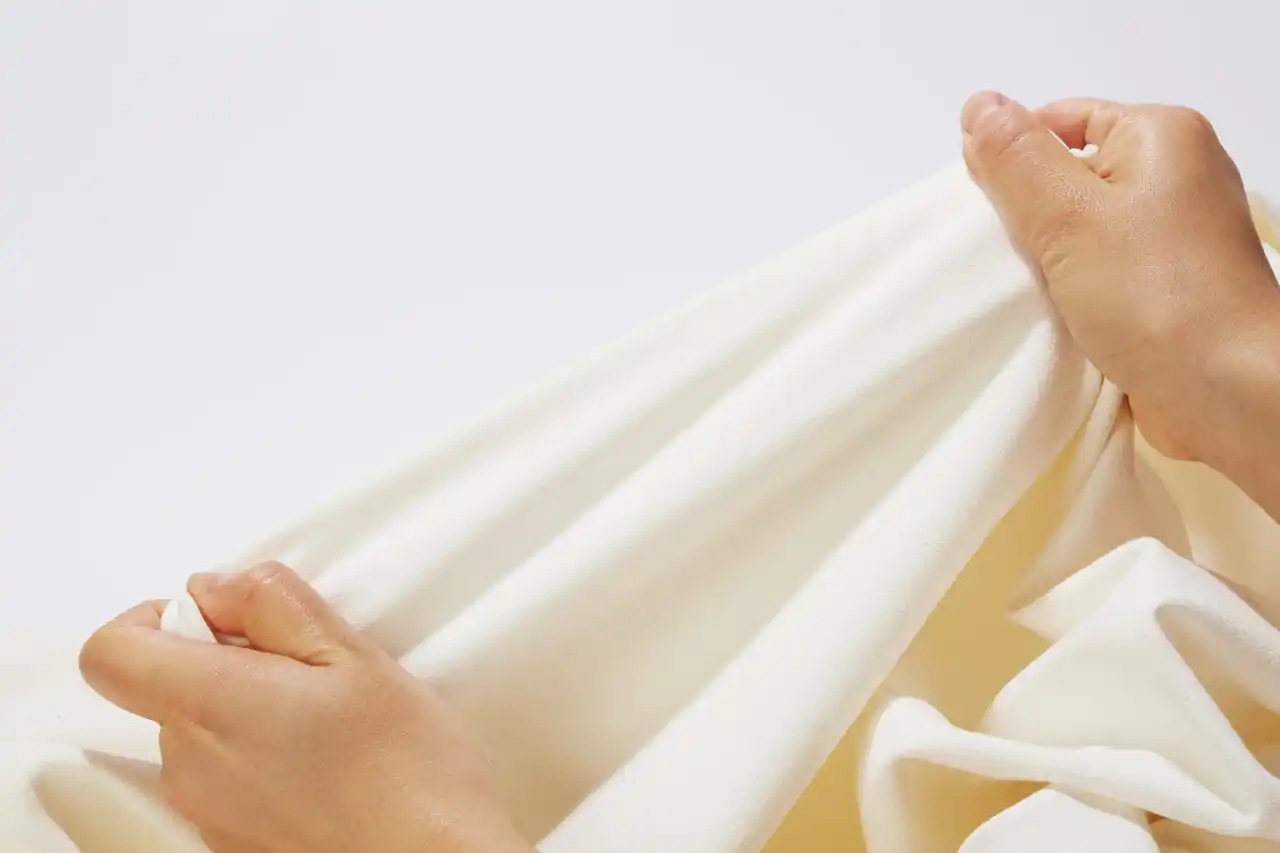 この考え方を原点に「はく化粧品」では、肌に潤いを与える「基礎化粧品」のように肌への優しさを追求。原材料や糸にいたるまで肌に合うものを厳選し、なめらかで優しい肌触りを実現しました。 |
