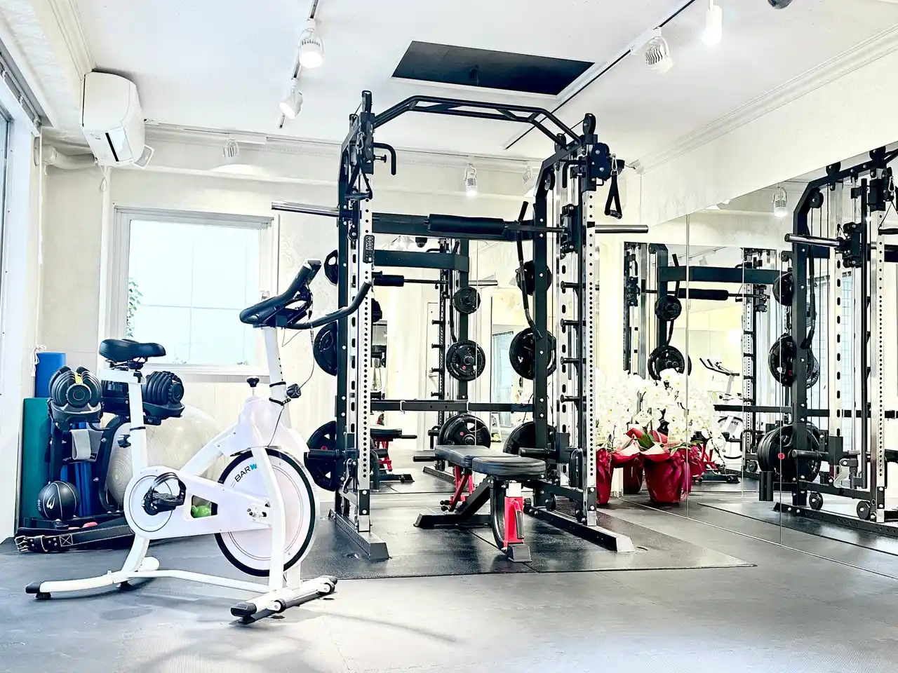 一昨年11月にリニューアルオープンし旧店舗と比べ広くなったトレーニングスペースと、ハワイのホテルを連想させる白を基調とした店内、そして窓から差し込む太陽光が自慢のパーソナルジムです。 ご来店からご帰宅まで他のお客様と顔を合わせる事無く過ごせる完全予約制プライベート空間でのトレーニングは、特にトレーニング初心者さんや多忙な経営者・ビジネスマン・お子様連れのママさんに、安心してトレーニングに集中出来ると大変ご好評頂いてます。 |