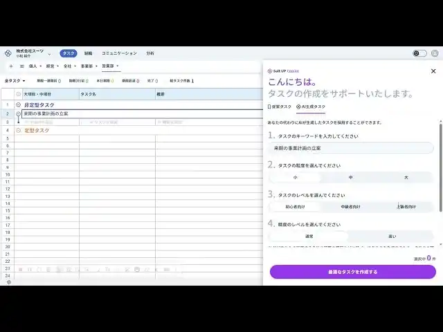 | 今般、当社は、スーツアップのタスクひな型機能「AI生成タスク」の生成項目に、新たにタスクの概要・重要度・期限が追加されたことをお知らせいたします。 | |||