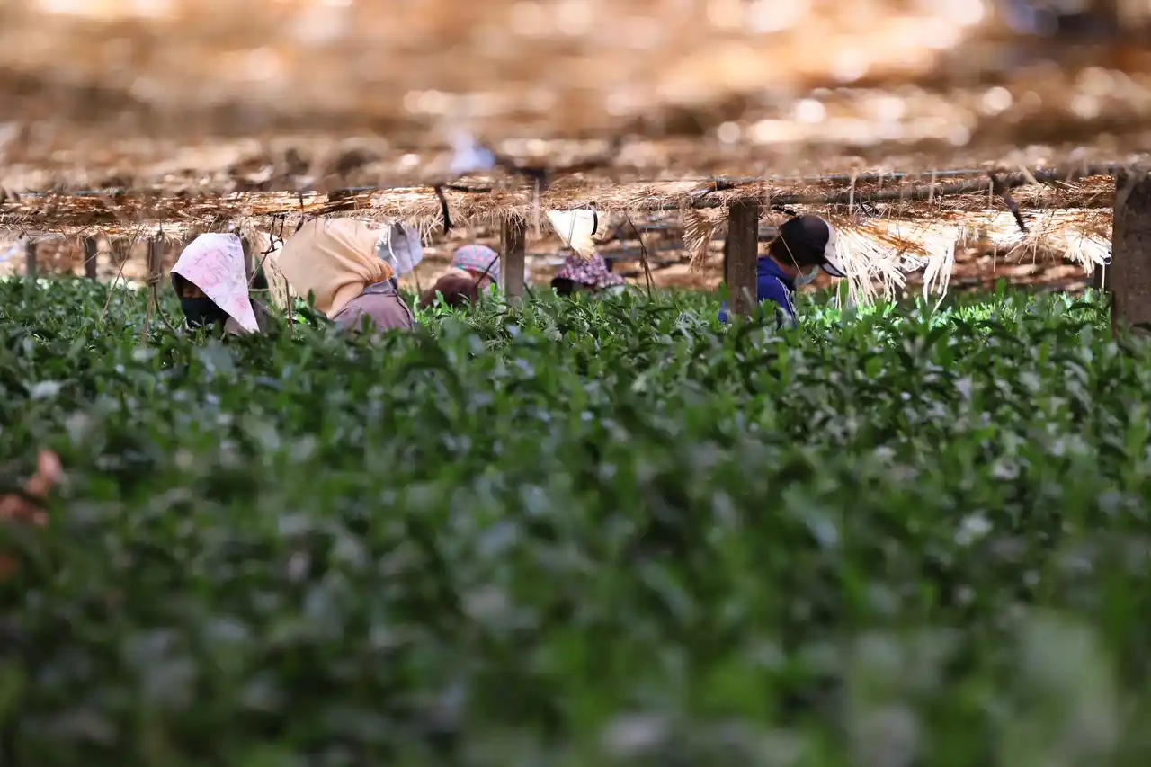良い茶を作るためには摘み手さんをはじめ沢山の方の尽力があります。 |