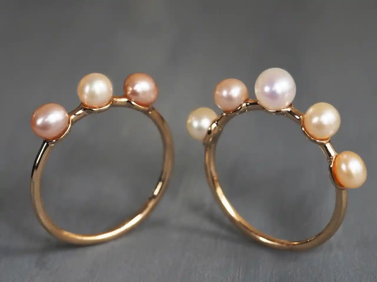 ホワイトゴールドは凛とした透明感のある佇まいに、ピンクゴールドはやわらかな温かみを感じさせる印象に仕上がりました。 |