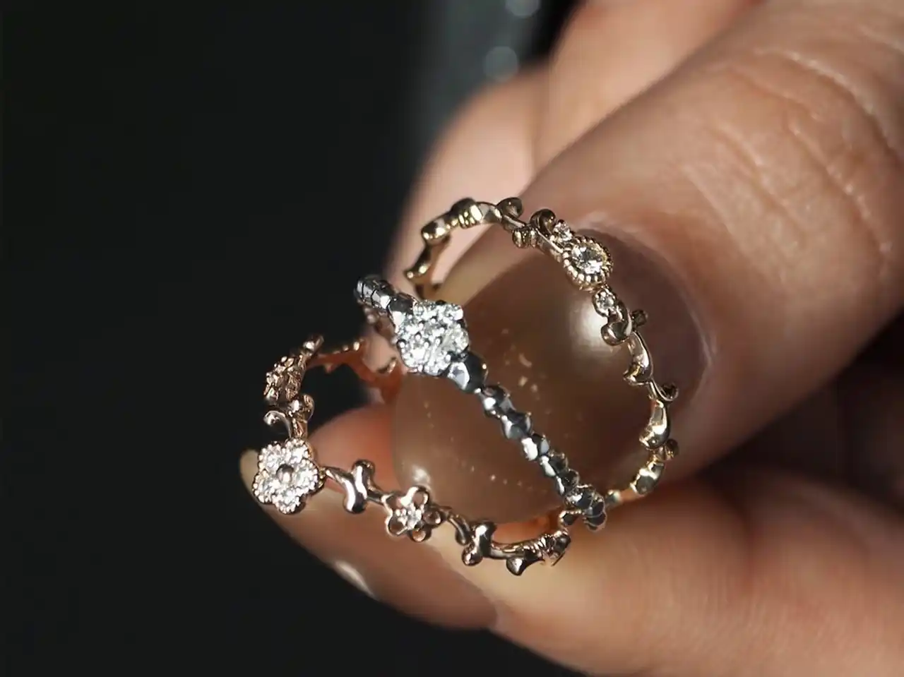 繊細な自然のモチーフが指先に静かな輝きを |