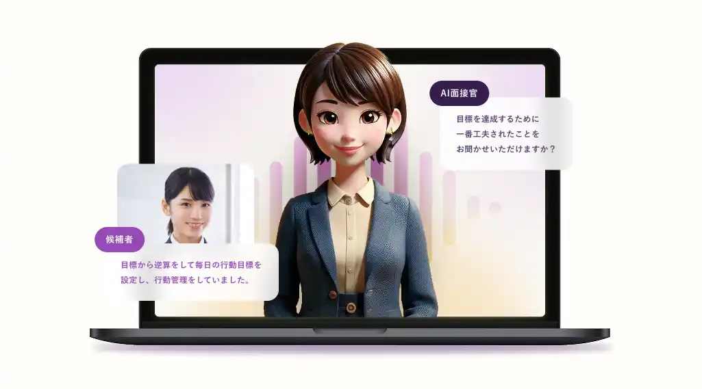 | 生成AI技術を用いた対話型の面接サービスです。事前に設定した質問だけでなく、回答内容に応じて深掘り質問を行うことが可能なため、レベルの高い面接が実現できます。 | |||