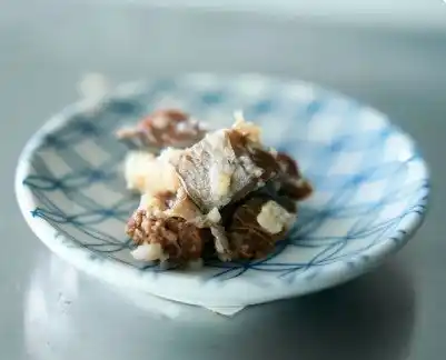 塩漬けした鯖を米ぬか・塩・唐辛子で一年漬け込んで作る福井の伝統食“へしこ”。 |