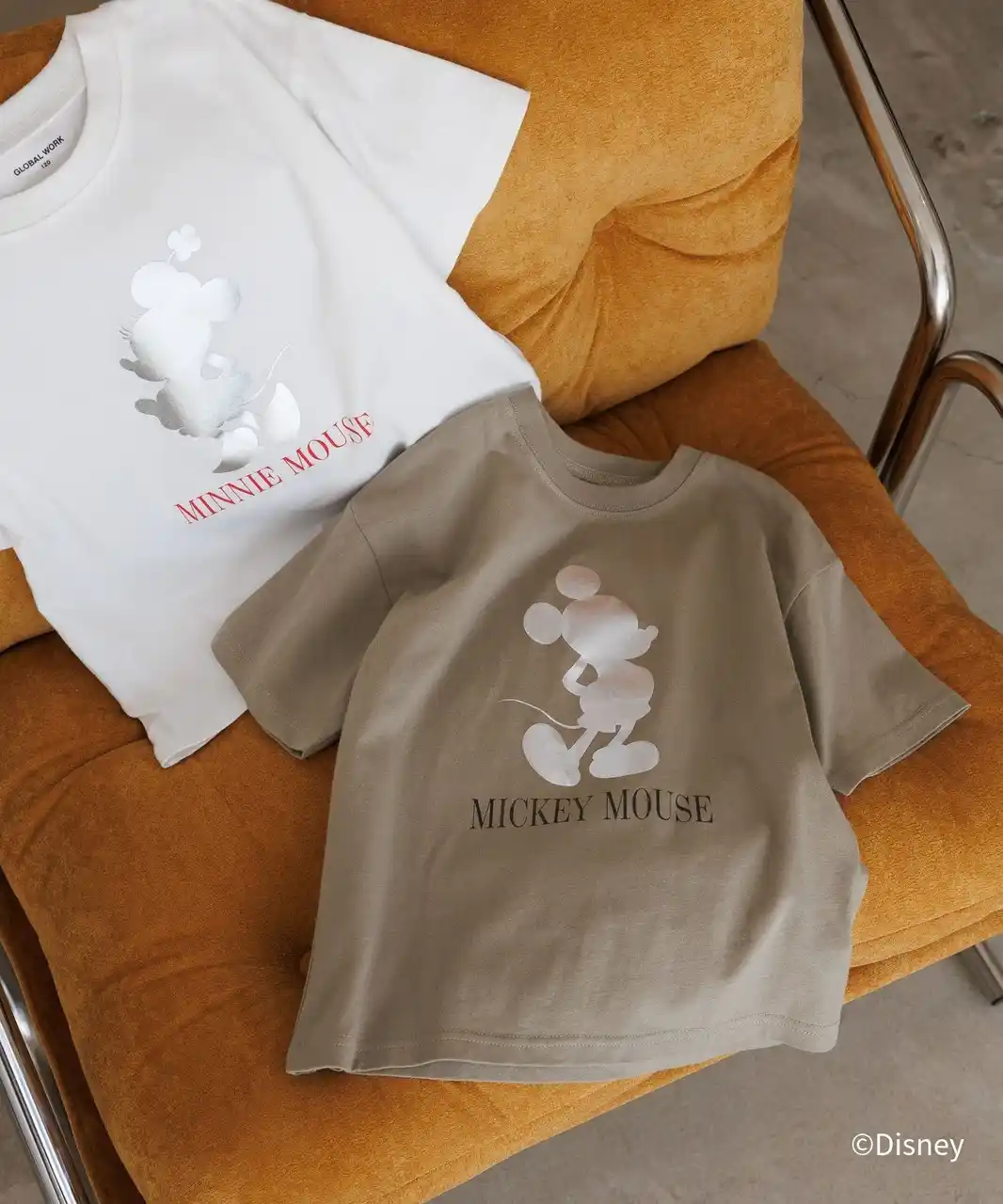 〈ミッキーマウス & ミニーマウス〉 キャラクターTシャツが大人向けのファッションとして定着し始めた80年代の空気感を表現。当時のシルクスクリーンプリントを彷彿とさせるハーフトーンや単色使いが特徴です。ニュアンスカラーのボディが、古着屋で見つけた1点物のような普遍的な魅力を放ちます。 |
