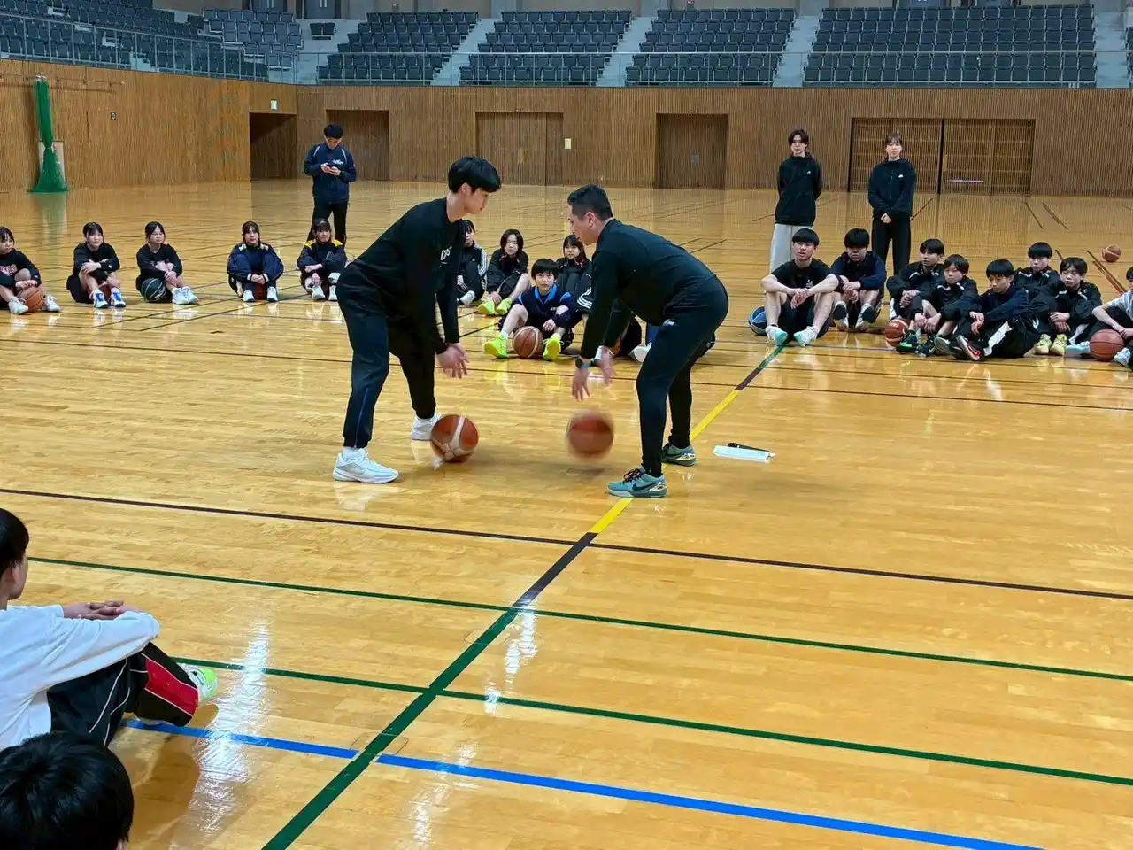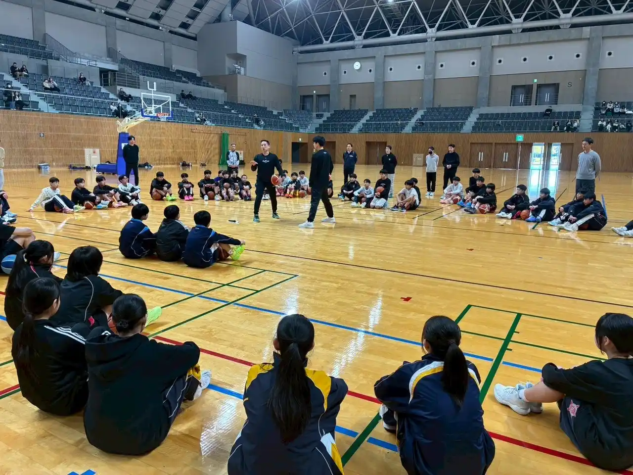 いつもシーホース三河にご青援ありがとうございます。 2月21日(土)、スカイホール豊田にて「とよた地域クラブ活動の地域指導者」と「豊田市内のバスケットボール部員」を対象に研修会兼バスケットボールクリニックを開催しました。 |